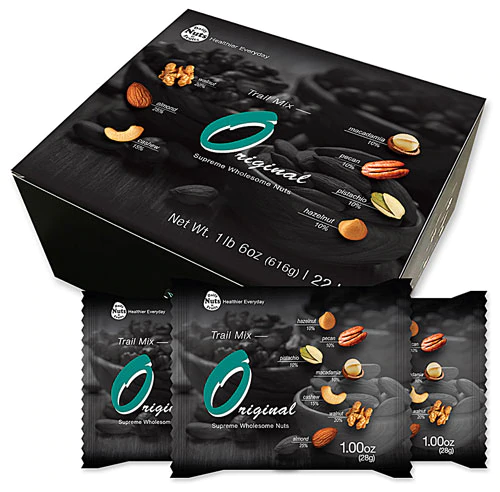 그 중에서도 다이어트 간식으로 쉽게 먹을 수 있도록 만들어진 하루 한 줌 견과류 소포장 제품에는 호두나 아몬드, 캐슈너트, 헤이즐넛, 마카다미아 등이 주로 섞여 있으며, 건포도나 건크랜베리 등의 말린 과일이나 유산균볼 등이 들어 있기도 합니다.