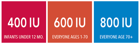 나이에 따른 비타민D 하루 권장량은 아래와 같습니다. (1㎍ = 40 IU)