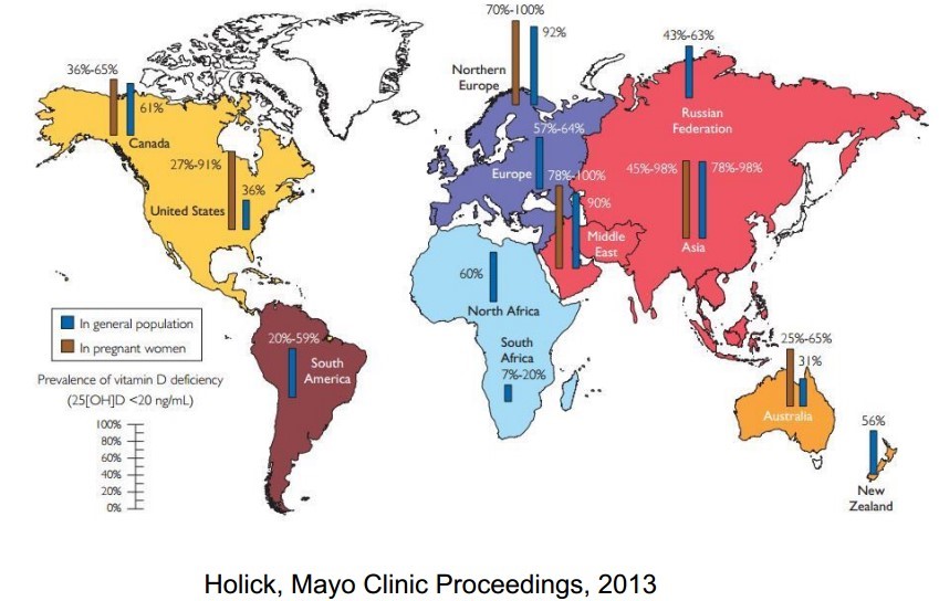 비타민D 결핍은 전세계적으로 증가 추세이며, 유럽, 미국, 아시아를 가리지 않고 광범위한 지역에서 높은 유병률을 보이고 있습니다.