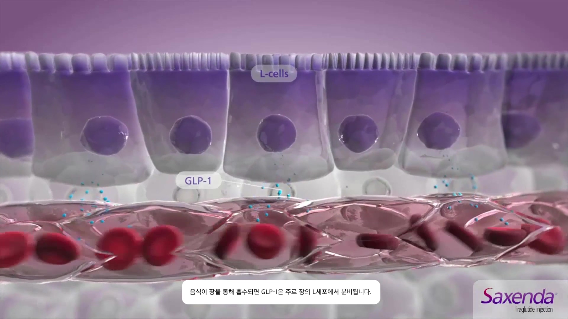 음식이 장을 통해 흡수되면 GLP-1은 주로 장의 L세포(L-cells)에서 분비됩니다.