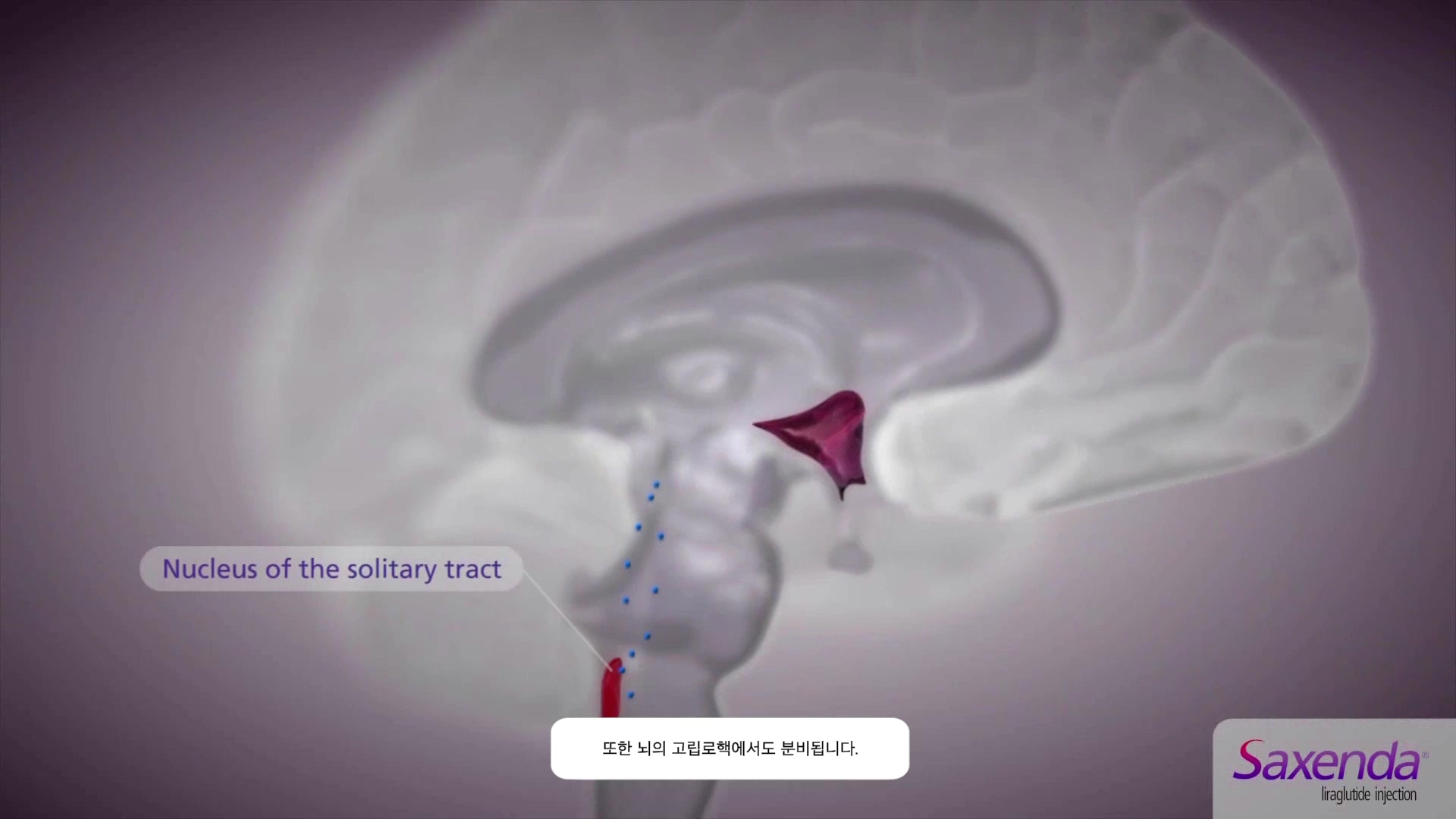 동물 실험에서 말초로 투여된 삭센다®는 뇌의 GLP-1 수용체와 상호작용하는 것으로 나타났습니다.