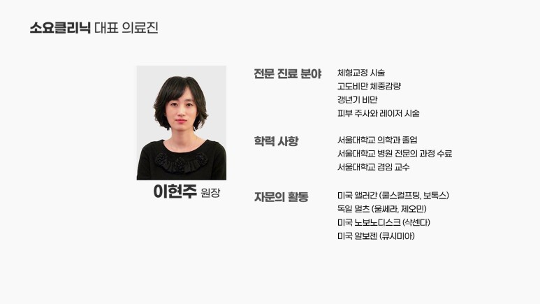 | [新 명의 열전] 소요클리닉 이현주 원장 “자연스러운 아름다움을 인체에 해롭지 않은 방법으로 되찾아 줘” (1) | 2023.11.23 |