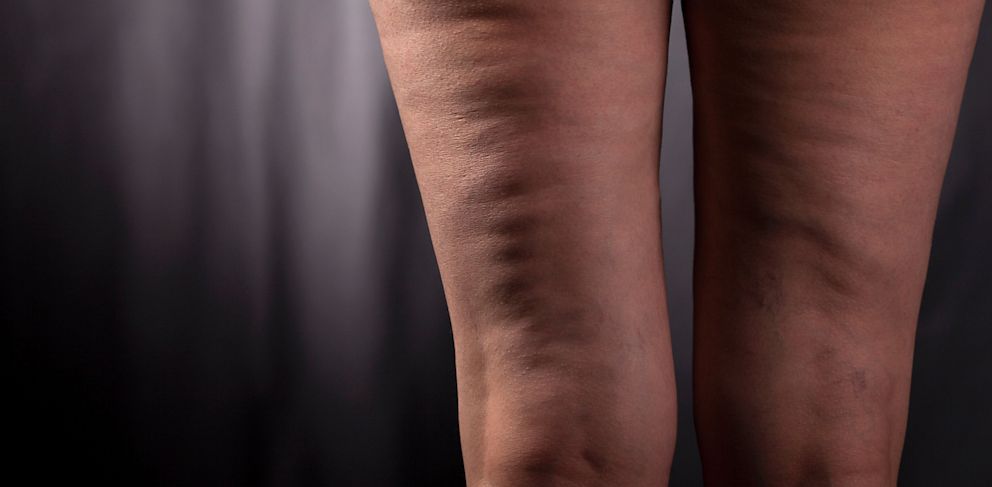 이럴 때 피부 바깥에서 보면 파도치는 듯한 줄무늬가 허벅지 뒤쪽에 심하게 보이거나, 울퉁불퉁한 오렌지 껍질 같은 셀룰라이트 변성이 엉덩이에 생기는 것입니다.