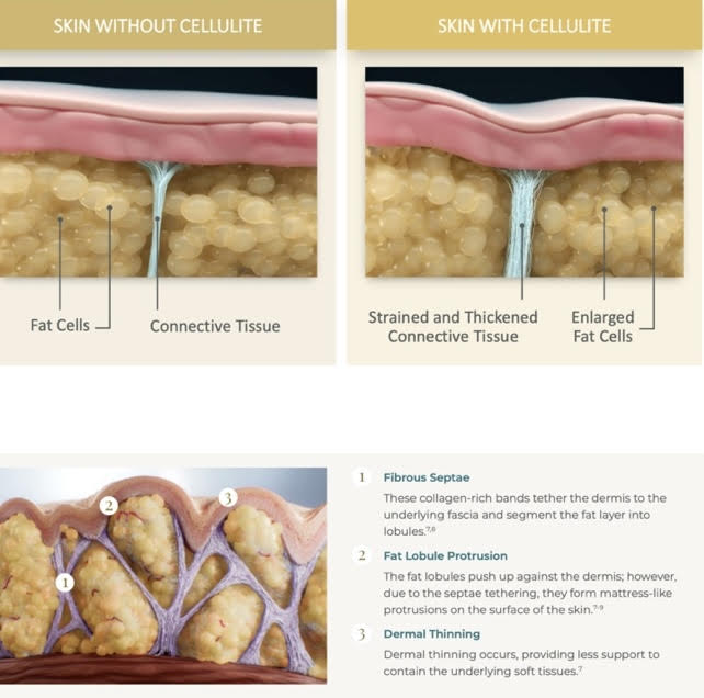 허벅지와 엉덩이의 셀룰라이트를 실제 효과적으로 개선하려면, 미세 순환을 손상시키지 않고도 피하 지방을 줄이는 치료, 불필요하게 증식된 질긴 섬유 기둥을 분해해서 울퉁불퉁한 피부 윤곽을 매끄럽게 만드는 치료, 그러면서도 피부 탄력을 강화할 수 있는 치료가 좋습니다.